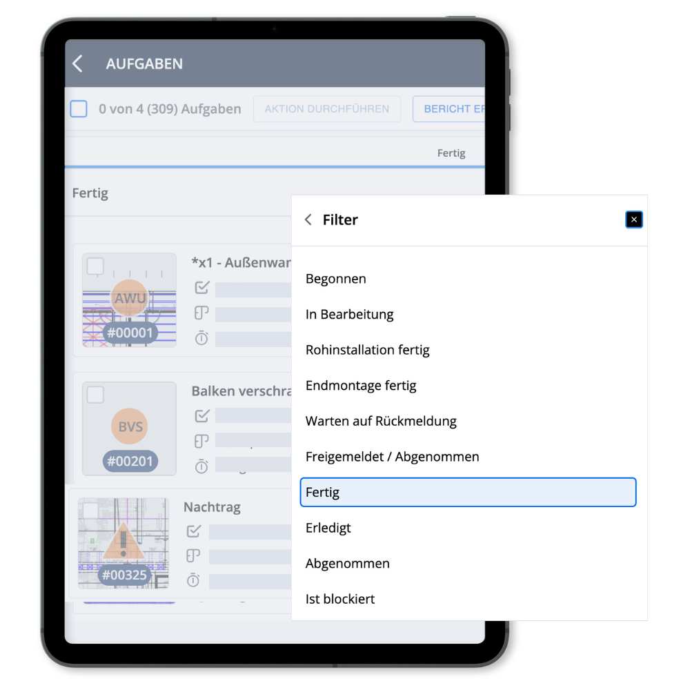 Zuständigkeiten sind klar verteilt, Aufgaben eindeutig beschrieben, Fortschritte sofort sichtbar. Das senkt die Fehlerquote, spart Nachfragen und reduziert Doppelarbeit. Gleichzeitig unterstützt es Führungskräfte wie Projektleiter oder Bauleiter in ihrer täglichen Organisation.